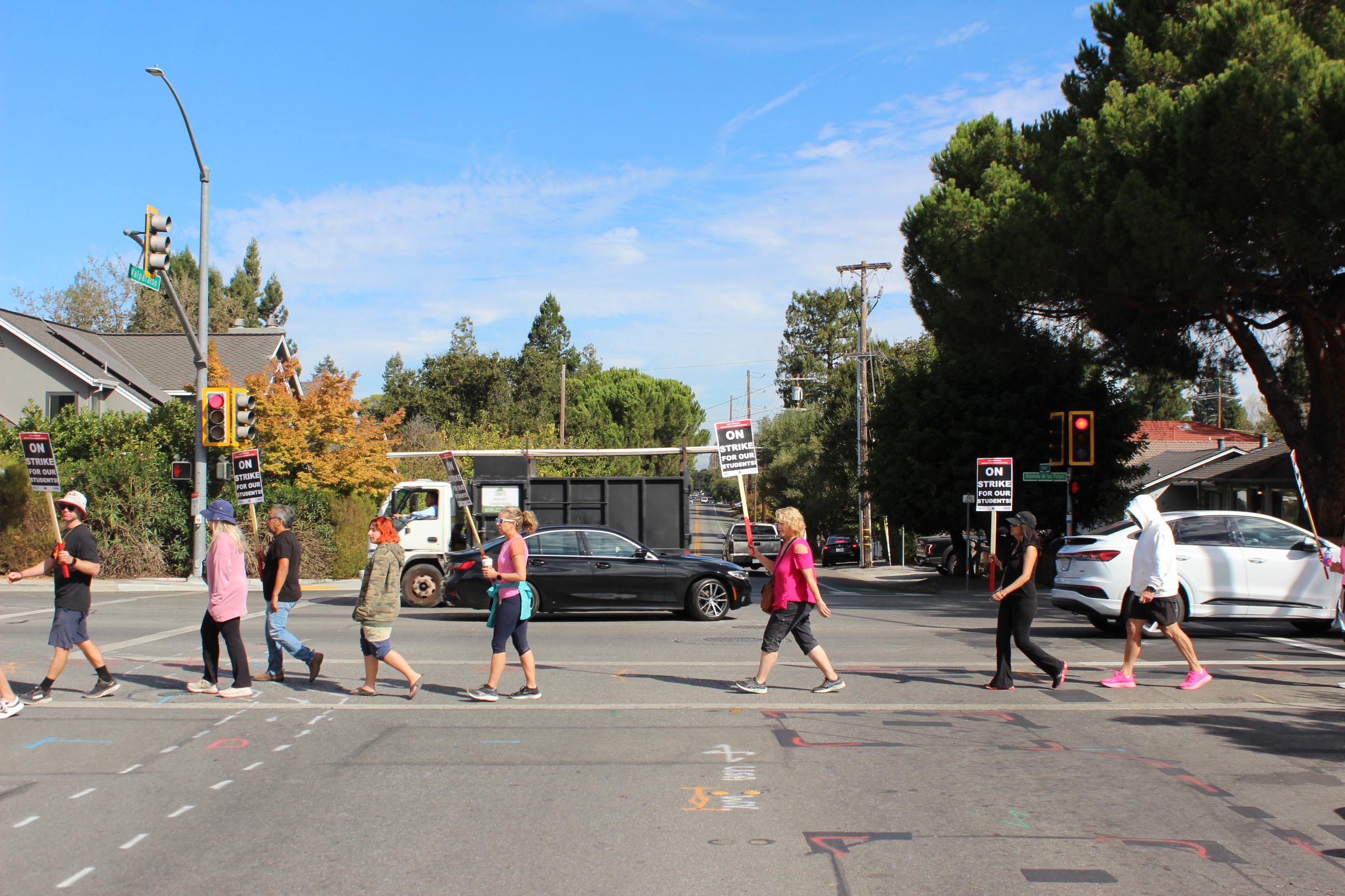 As the group marched down Alameda de Las Pulgas in Menlo Park, cars and trucks blew their horns in support of the teachers, further motivating the movement.