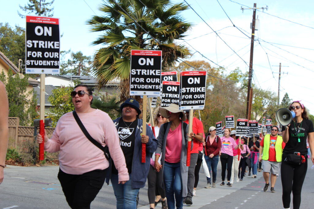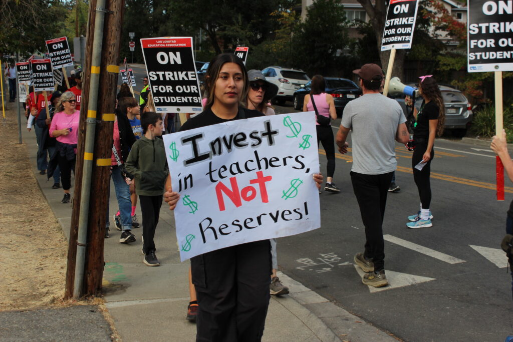 For teachers, the day started with picketing outside both of the district’s campuses, as members of the Las Lomitas Education Association made speeches outside La Entrada Middle School.