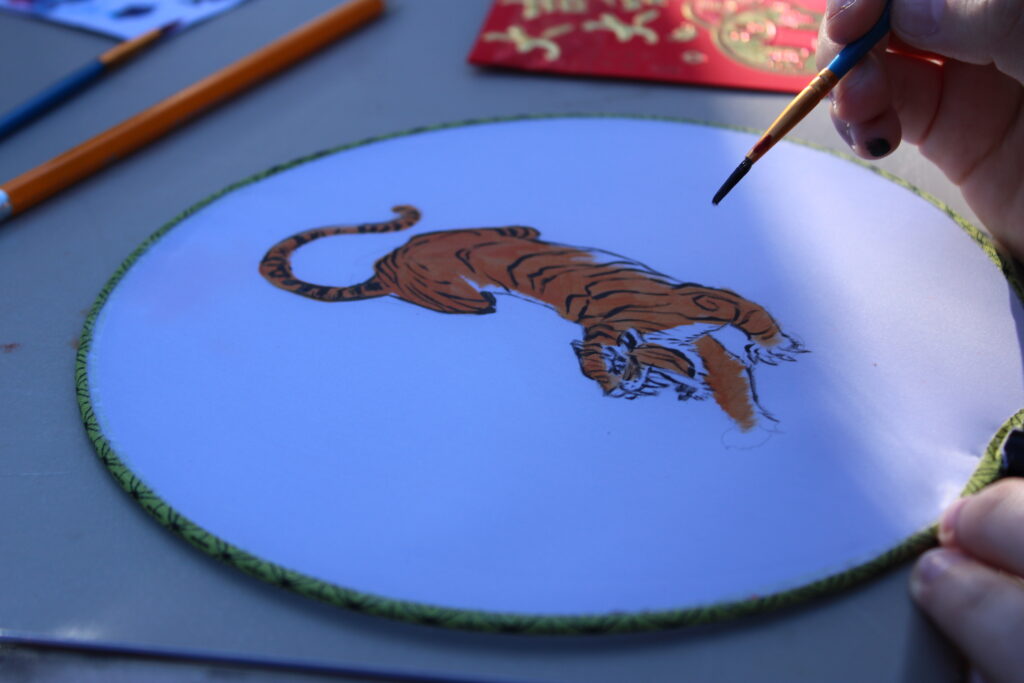 Students engaged in a variety of cultural arts throughout the event. Attendees could make their own festive decorations by writing traditional Chinese calligraphy and making Chinese knots. Other students spent their time painting on traditional fans or getting their faces painted.
