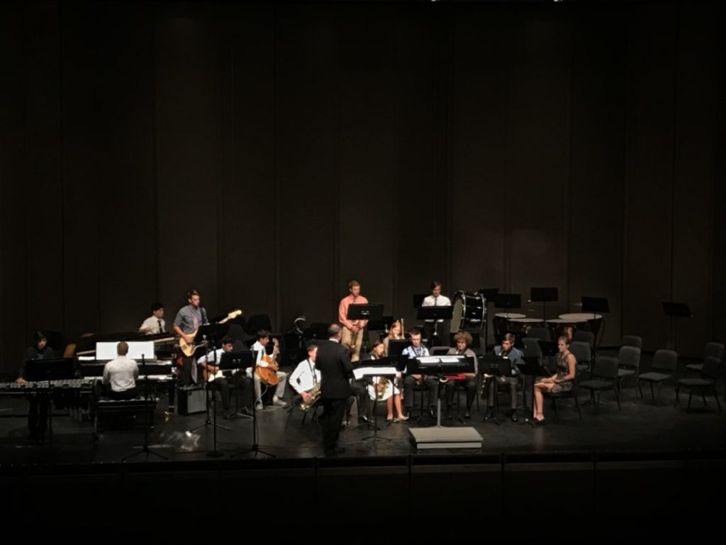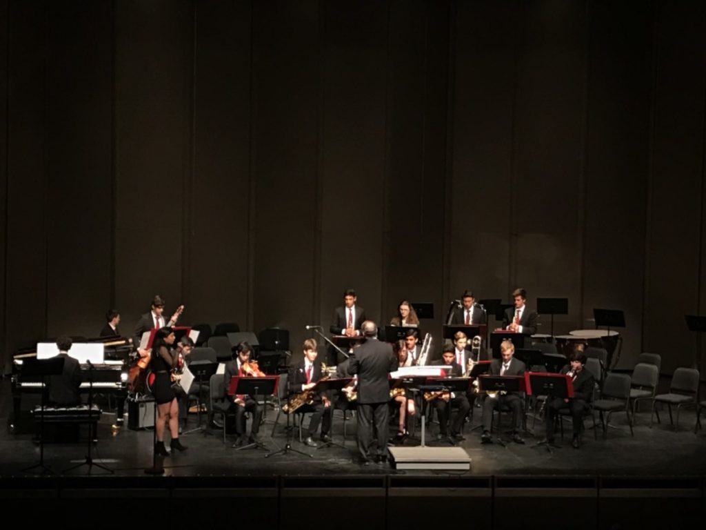 The night started off with the orchestra band playing the first set. The concert band followed right after with their set which led to a 10-minute intermission for the students. Afterwards, jazz II began their set with vibrant tunes and melodies. Jazz combo, a smaller class in jazz III, got together to play a small set to open for the jazz III class. Jazz III ended the night with four songs and a roaring applause from the audience.
