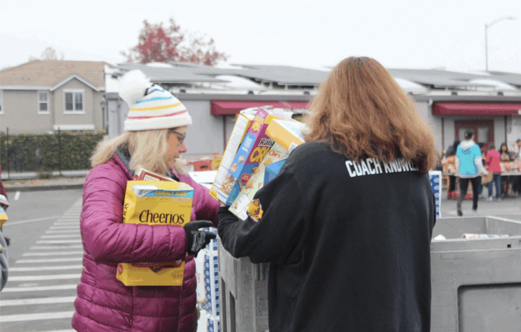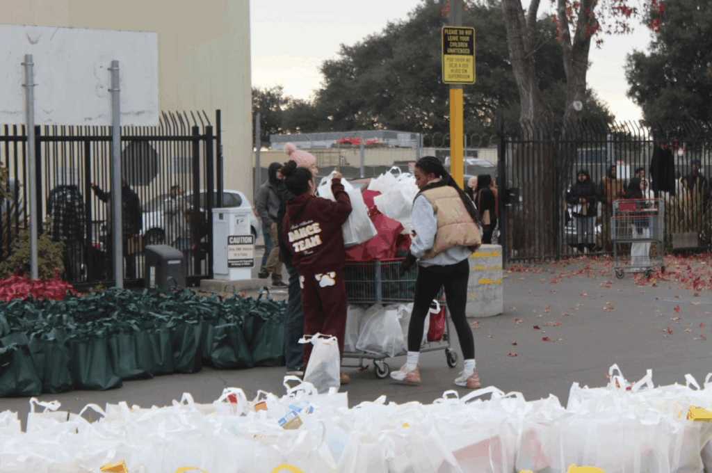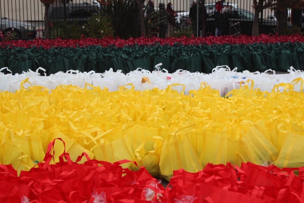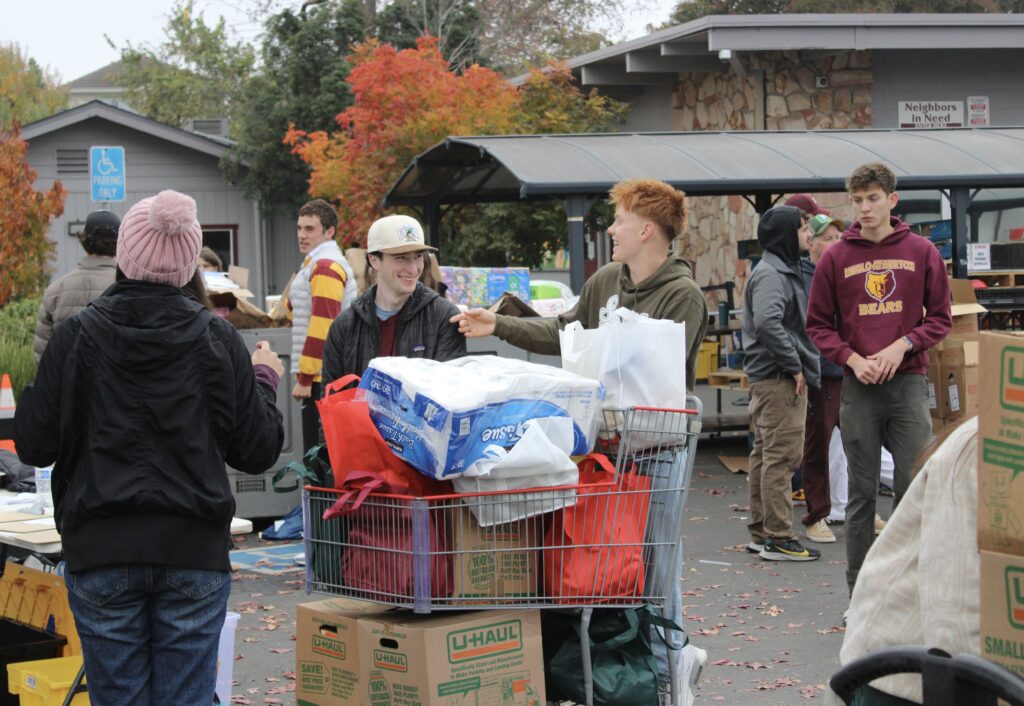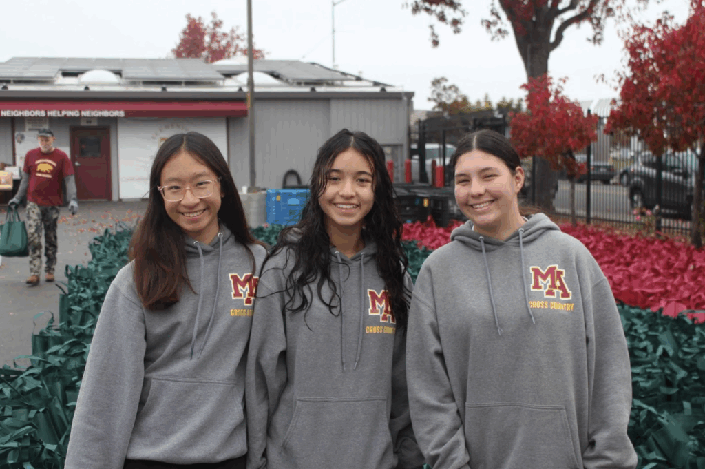 Families had started lining up long before M-A students arrived, and by 8:30 a.m., they were lined up around the block, and food distribution was underway. Students, staff, alumni, parents, and other community members piled bags and boxes filled to the brim with items ranging from food to hygiene necessities. Volunteers then brought and unloaded them into each family’s car.
