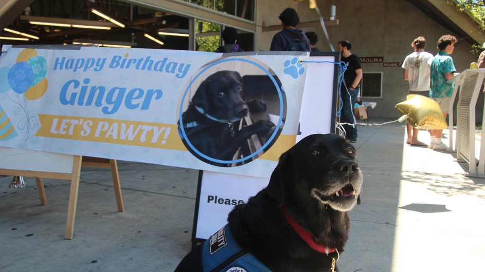 People gathered in the PAC Cafe to sing to Ginger and eat cake, cupcakes, and cookies. There were also treats offered for guests to bring home to their own dogs and stickers with Ginger’s face on them.