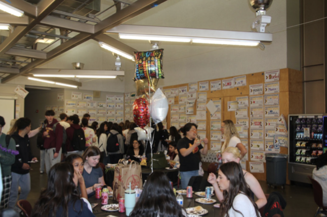 Students and staff gathered in the PAC Cafe to celebrate the seventh birthday of M-A’s beloved service dog, Ginger, on Friday. Since joining the campus last fall, Ginger has become a cherished member of the M-A community by providing comfort, emotional support, and smiles to students and staff. “We threw this party to celebrate the District’s canine program and animal-assisted interventions,” Dr. Edith Bennet, Ginger’s caretaker, said.