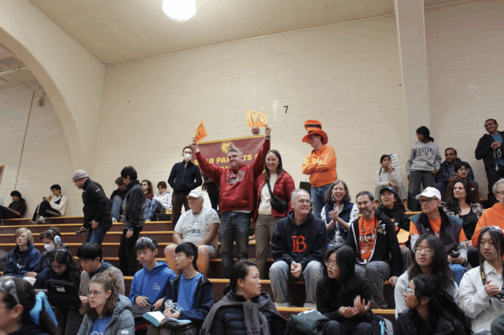 The crowd was very supportive with big posters and chants, showing off school spirit and helping to boost the overall mood as the competition continued.