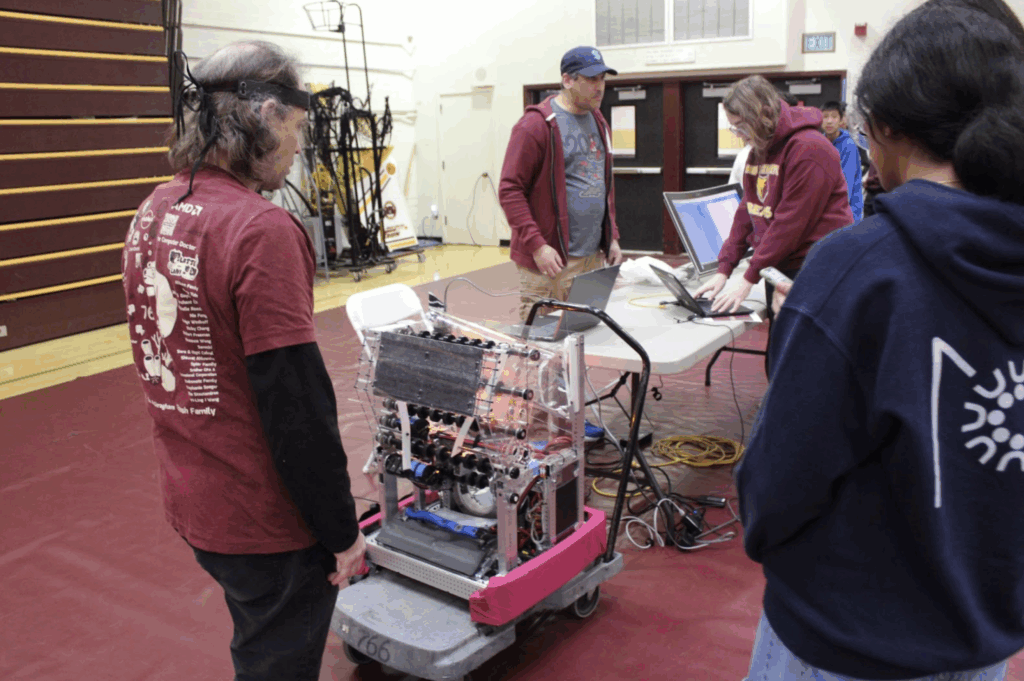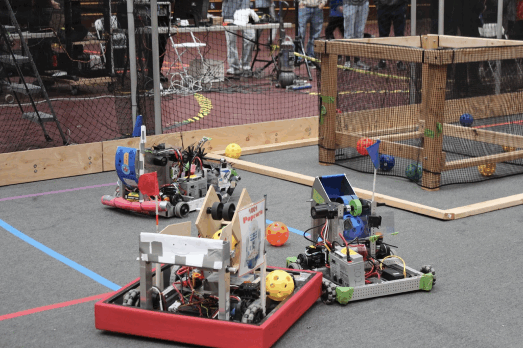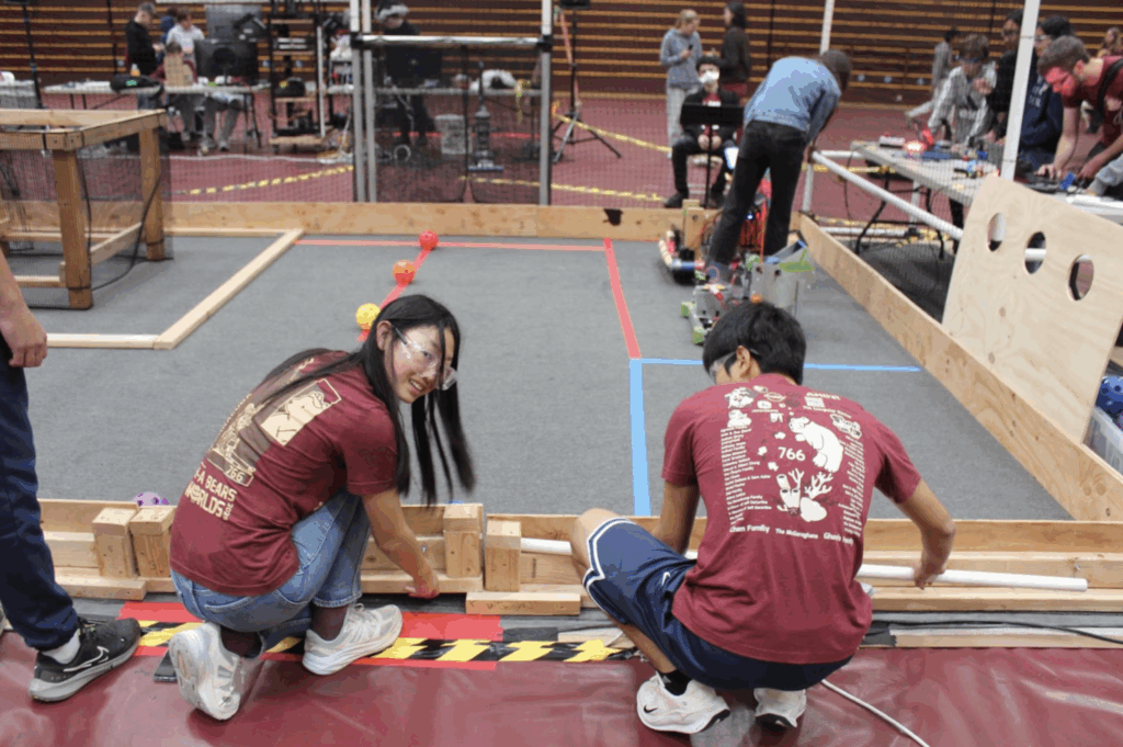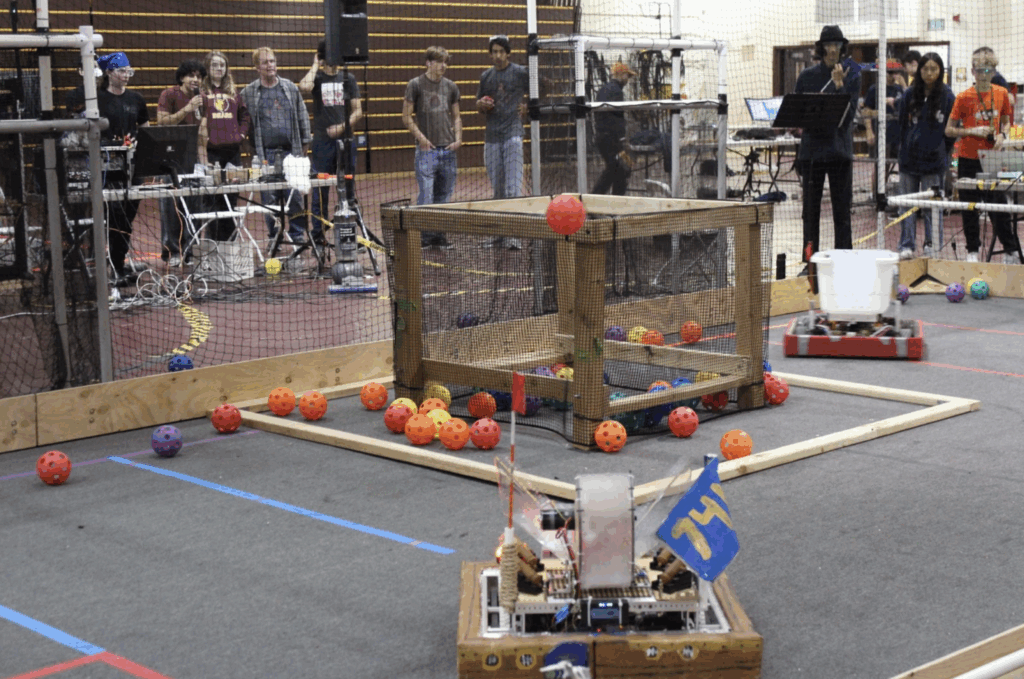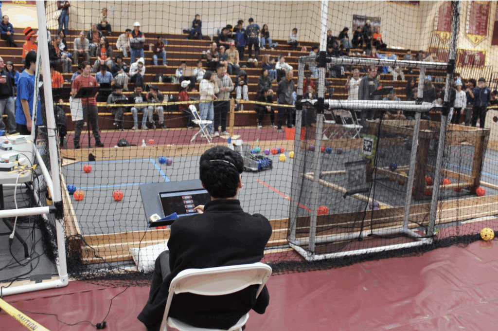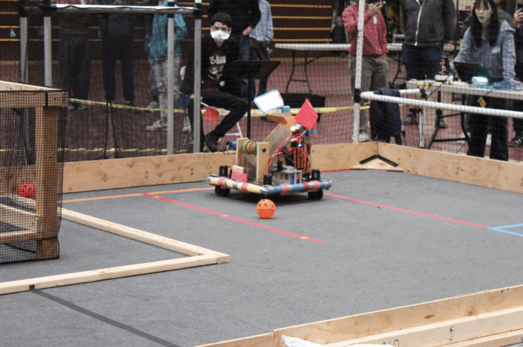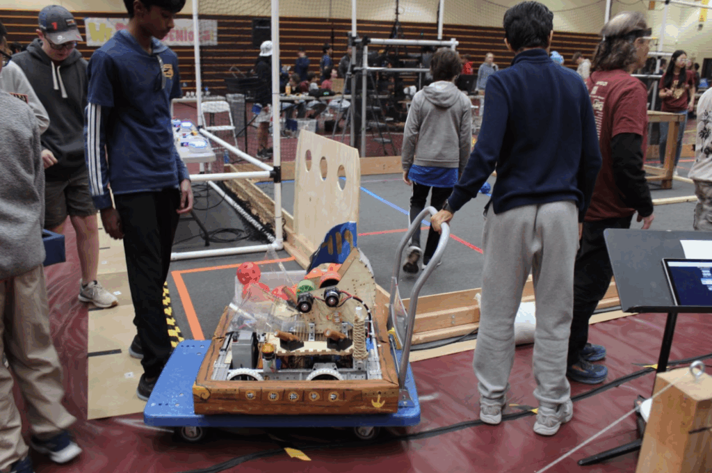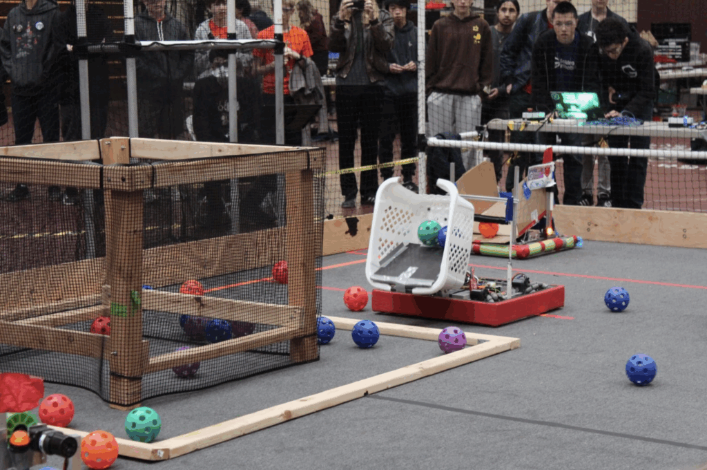 The competition began at 9:00 a.m., the various robotics teams were split into two alliances – red and blue where they would fight each other in round robin. At first, teams struggled to figure things out, strategies were basic, and many robots failed to work. In the first match, none of the blue alliance’s robots were working. However, due to the red team scoring the wrong colored cannonballs, the blue team managed to win 12-0, despite having broken robots.