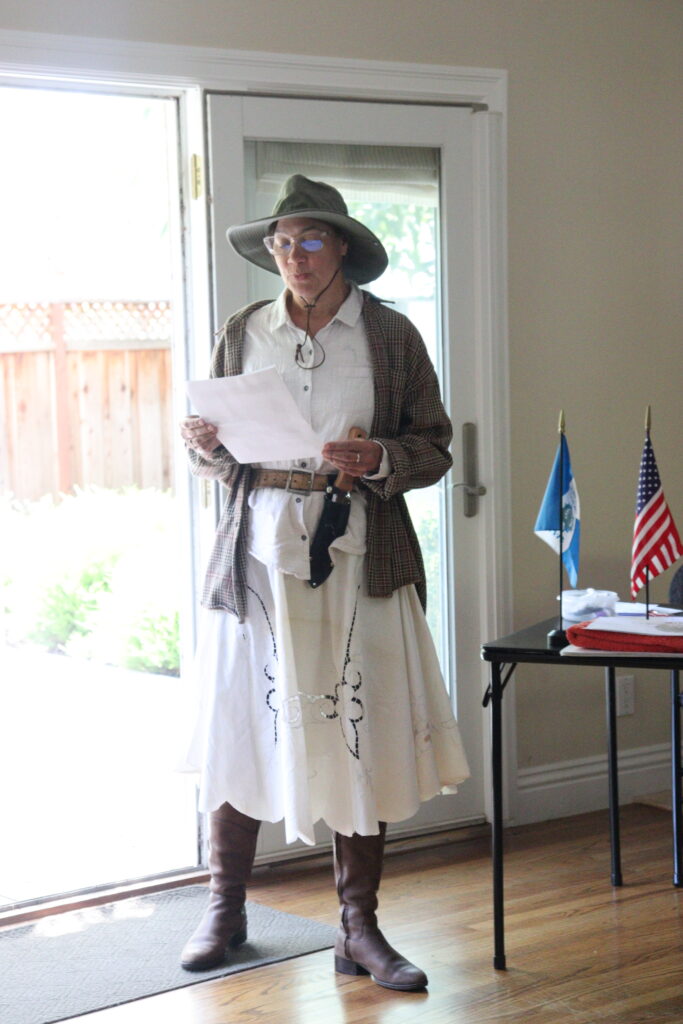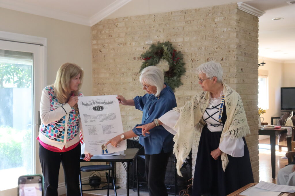 Monthly meetings are just a fraction of the Gaspar de Portolà Chapter’s work, and most time is spent discussing upcoming projects. The group participates in local events, like the Historic Union of Redwood City’s Memorial Day celebration, and hosts their own. They recently collaborated with the Los Altos DAR chapter to celebrate the Battle of Lexington’s 250th anniversary. Gaspar de Portolà members also organize gravestone cleanings, little free libraries, and historical markers. Last year, they exceeded the California DAR state society’s service requirement by 500 hours.