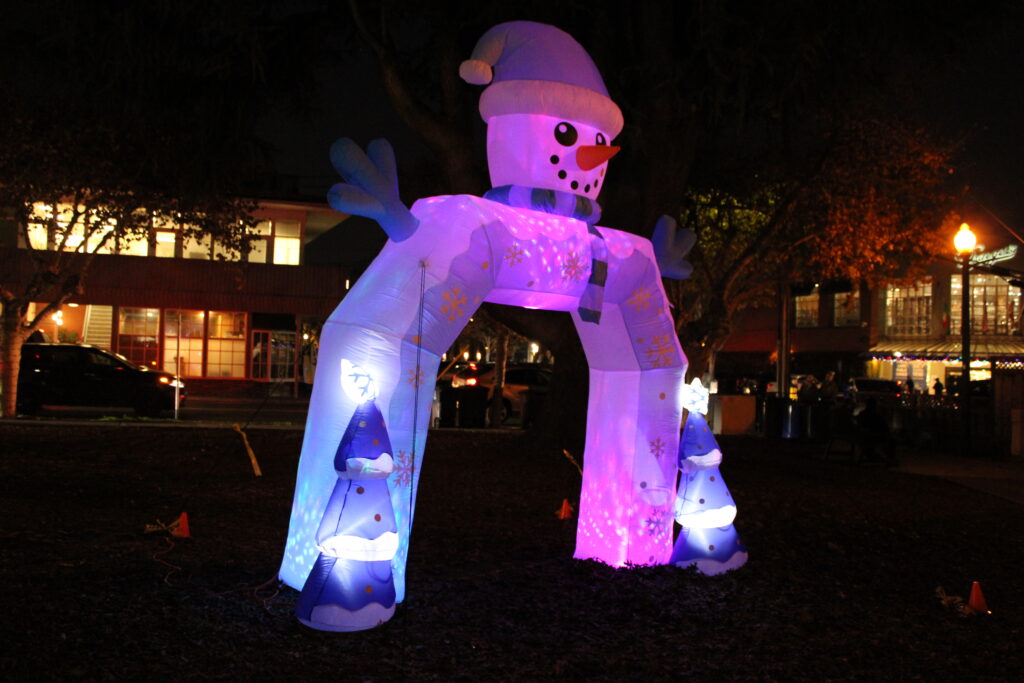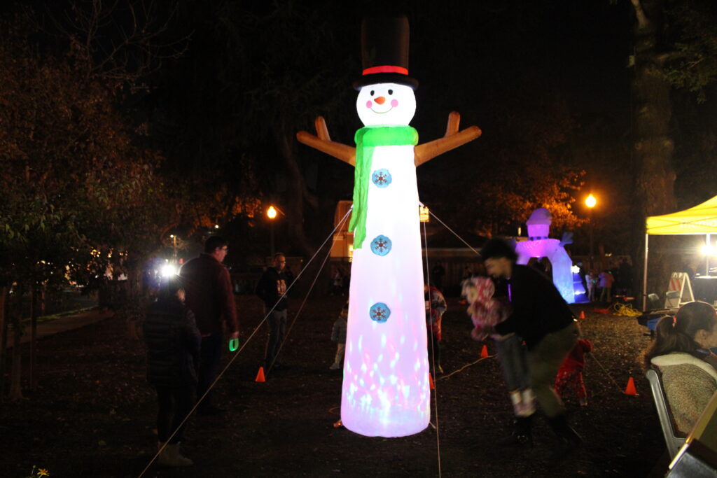 Throughout the park, a variety of different attractions were displayed, including holiday-themed inflatables to take pictures with, booths offering arts and crafts activities, and stands distributing steamed apple cider and hot chocolate. “We just love that it’s a community event celebrating the holidays with the city, and other organizations like Menlo Church coming together to provide entertainment and hot chocolate, and a time for families together,” community member Julie Hooper said.