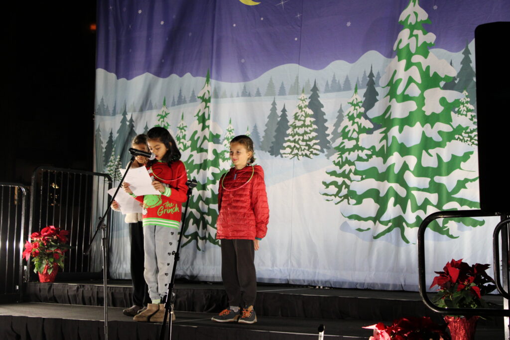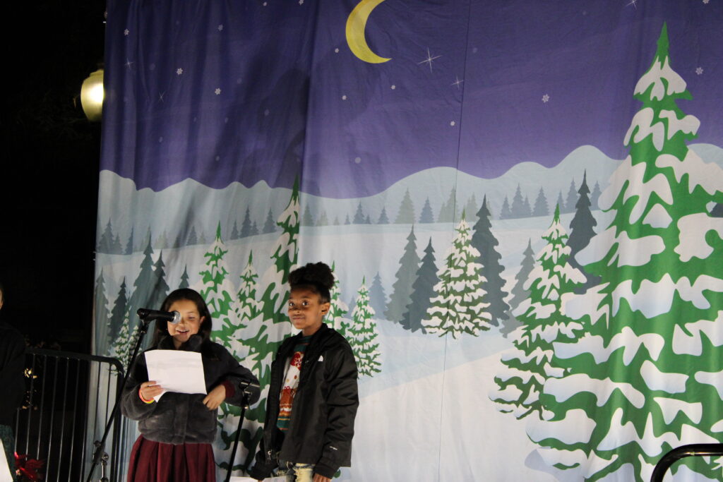 The first song performed was “Hot Chocolate” from the classic holiday movie, The Polar Express directed by Robert Zemeckis. Community members cheered and danced along to the next song, which had an upbeat pace, and described the season of winter and the falling of snow. Another song performed focused on holiday lights, which was fitting to the event. Lyrics of “Sparkling lights” and “Merry and bright aren’t they twinkly?” built excitement amongst the audience for the tree lighting happening later in the evening.