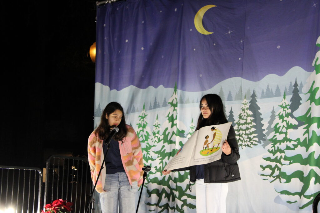 The first performance was an original poetry reading titled “Season of Holidays,” executed by children from the Menlo Children’s Center. The young performers recited verses about the shift from fall to winter and classic holiday traditions. The piece ended with the line, “Grab a hot chocolate if you have change in your pocket and let the kindness show,” leaving the crowd feeling festive and connected.