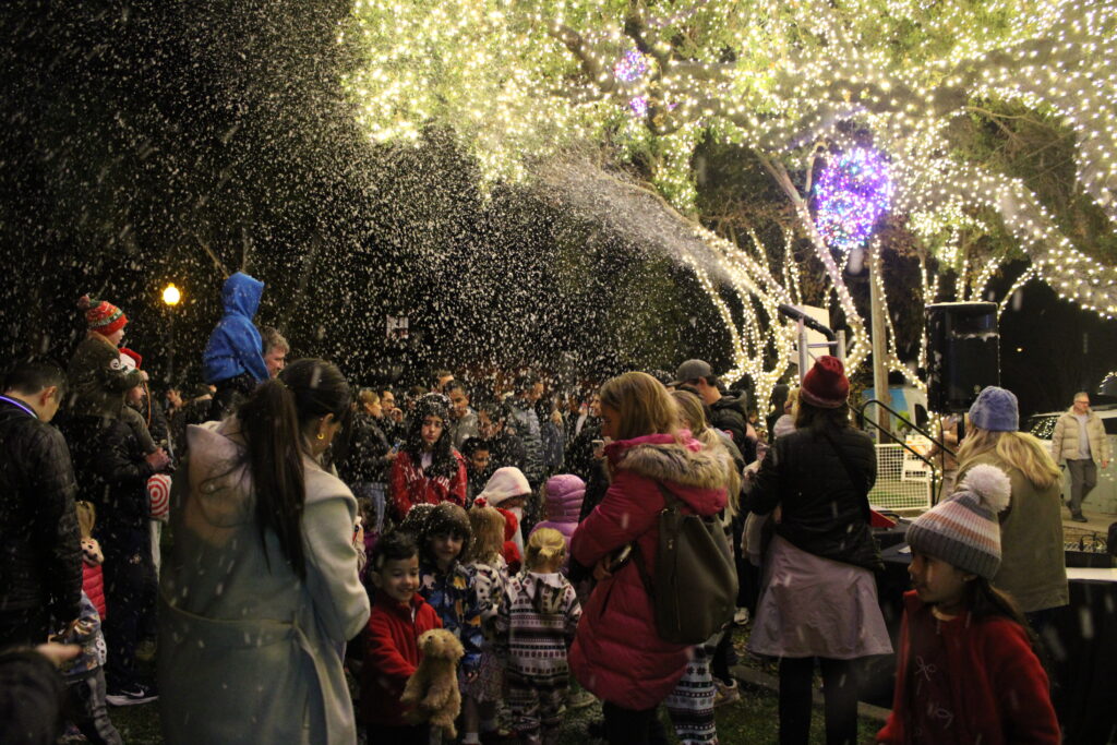 After the tree lighting ceremony concluded, community members were left to mingle and enjoy the other attractions set up around the park and the holiday atmosphere. Some children played in the fake snow while others made their way over to stands handing out glow in the dark necklaces and offering festive games.