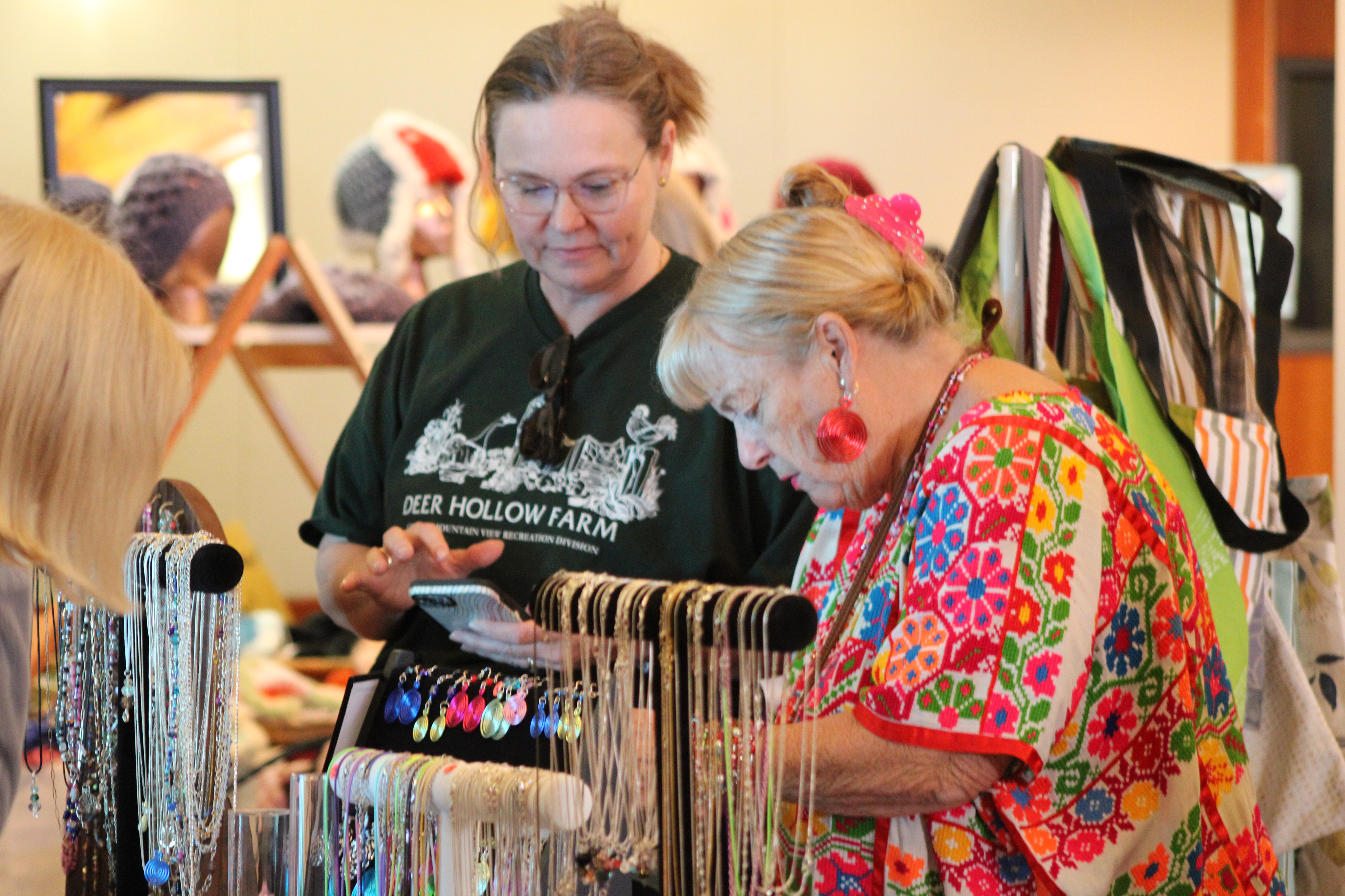 The Holiday Bazaar has become a tradition that many vendors look forward to each year. Jewelry maker and three-year vendor Pam Randall enjoys the social aspect. “For me, it’s meeting the people. I see a lot of my friends that come here, and they come to visit, and then I meet a lot of new people and chit chat,” she said. “The people that work here are really helpful and kind.”