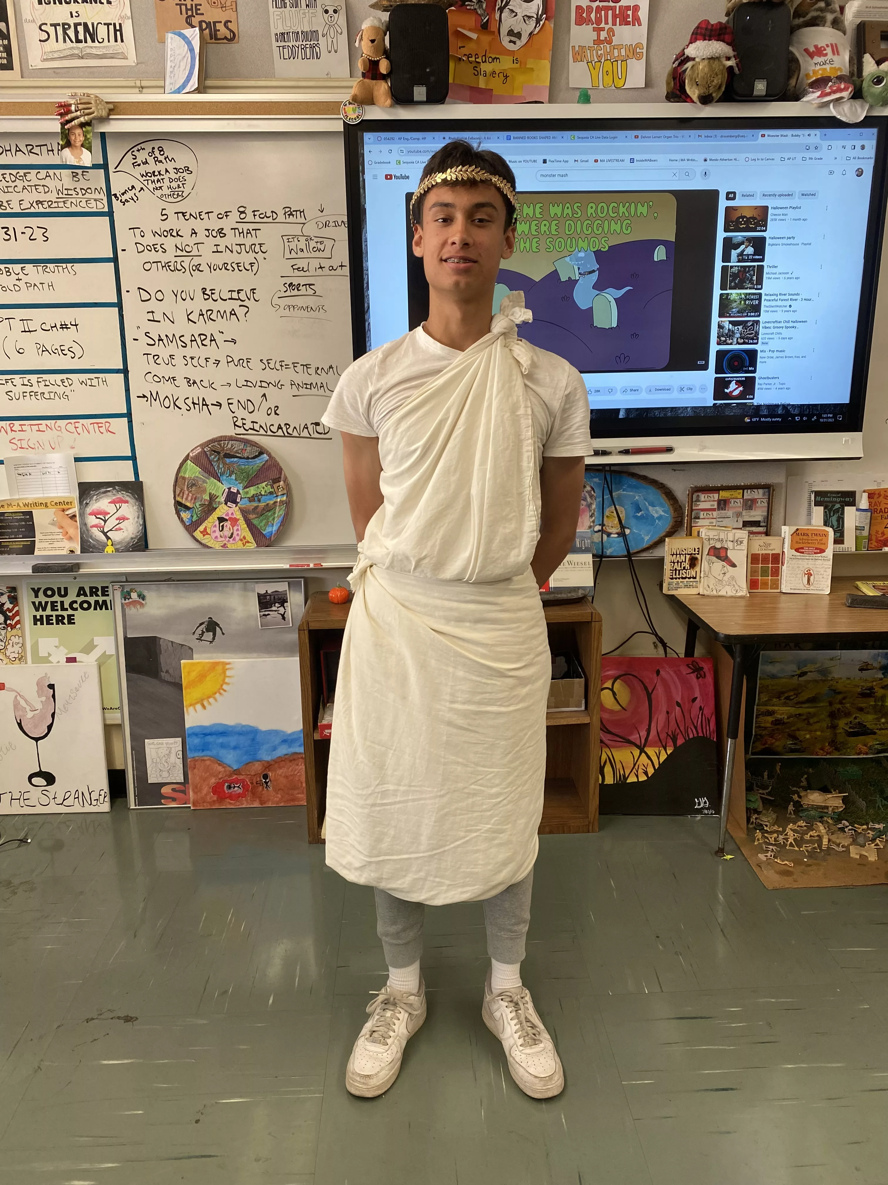 Junior Mohan Gupta wore a Roman toga for Halloween. He said, “I think of the Roman Empire occasionally. When I do, I think of how it was a major step forward in the history of civilization and introduced many staples of society, such as public order, sanitation, and the road systems.”