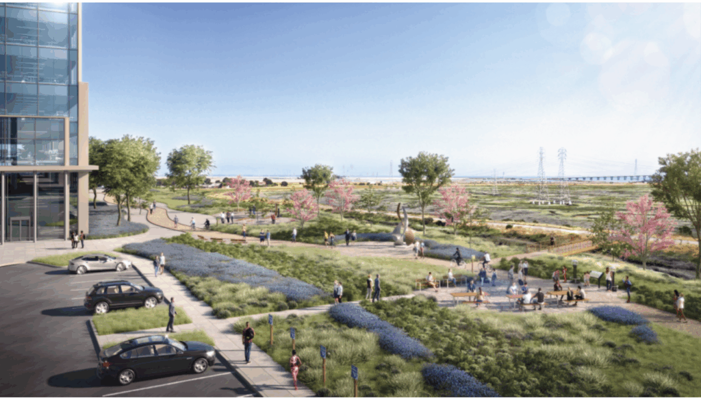 The final adopted plan for the business district, released in December last year, proposes a new “main street” along Bay Road that will serve as EPA’s downtown. Bay Road Holdings LLC, the owners of the former Romic site, proposed 1.3 million square feet of offices, retail, and public community spaces.