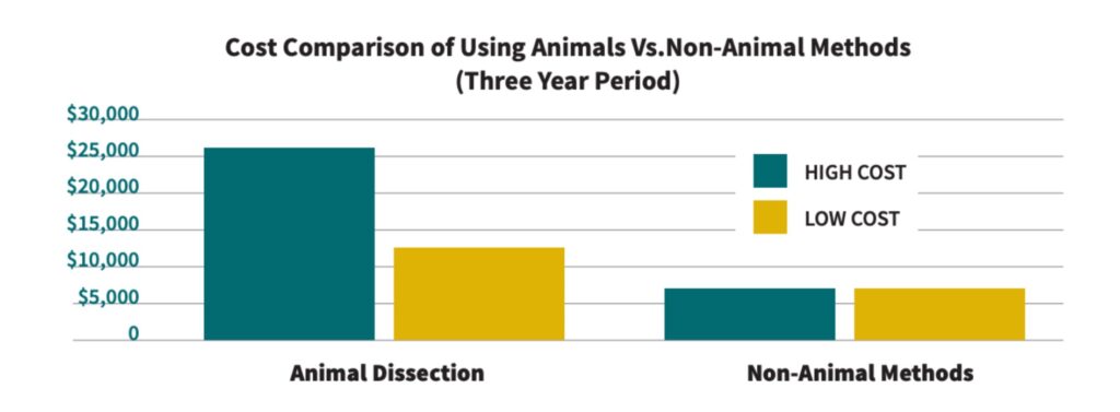 I also noted your comparison of costs was taken from AnimalLearn. When I read their article, it seems that their claims were not well thought out. For example, they said that the VR Cat dissection and model was equal to a cat dissection. Here’s a video promoting the cat dissection software- https://www.youtube.com/watch?v=Ga5g7Nm7iV8 If you watch it, you’ll likely realize it’s not as sophisticated as you might think. As a VR program, they neglected to account for the 30 VR sets needed for a class, which would cost at least $300 each for a budget headset. That means you’d have to add another $9000. According to reviews I read, the budget headsets tend to break after a few years (especially if subjected to the abuse of teenagers who don’t own them). This would mean that the non-dissection method would actually not save any money and may wind up being expensive. If you look at the Altay model, it too leaves a lot to be desired with the amount of detail it shows (and appears to not be available for sale).