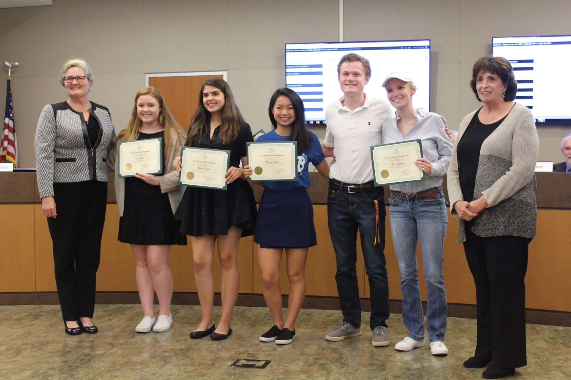 Stefan Sujansky, a Woodside High School senior who was also recognized by the board on Wednesday, thanked Steere and Ornes for taking the first step. “The credit entirely goes to the M-A students,” he said. “We are following in their footsteps.”