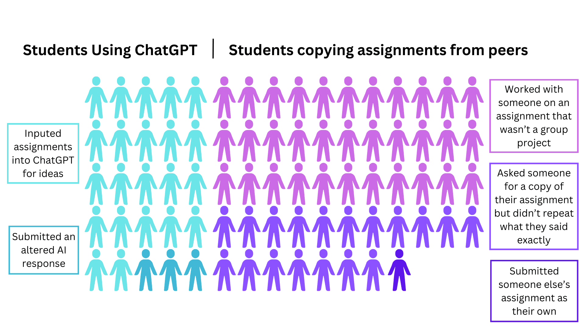 Many students thought using ChatGPT was only wrong if people submitted a word for word or slightly altered ChatGPT response, but not if they only used it to generate ideas. One student said, “I feel like it’s only wrong if you copy and paste, or if you understand the topic but are too lazy to write it. If you use it to give you ideas, like an outline or something, I feel like it’s okay. Or if you just don’t understand the topic and have tried other ways to try to understand, but you still don’t. It’s a useful tool, but it shouldn’t be abused.”