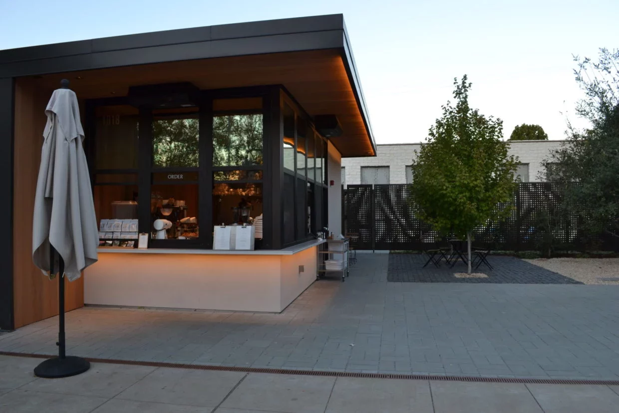 Saint Frank Coffee, tucked between a parking lot and a mixed-use development across from the Caltrain Station, is now the closest coffee spot to M-A. The kiosk was required as a part of the development project for 1020 Alma Street, and it is the San Francisco-based coffee company’s newest location. A month into its soft opening phase, the kiosk has successfully attracted customers through word of mouth, delightful service, and upscale coffee.