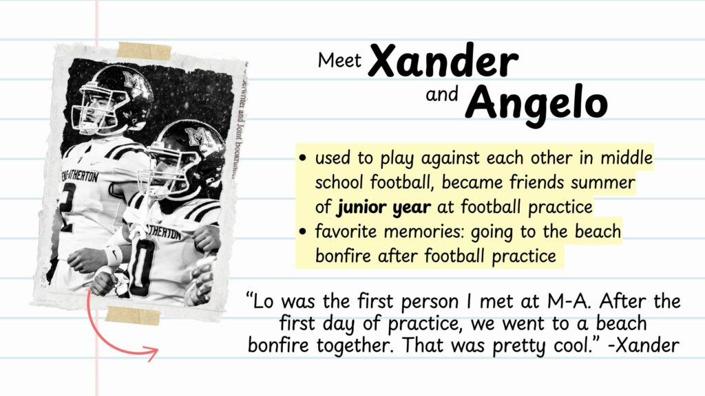 “I mean, I’ll throw the ball to Lo and he would catch it,” Xander Eschelman said. Xander, quarterback and 2nd-team league player, and Angelo “Lo” Marin, wide receiver and team MVP, proved to be an unstoppable pair on the football field. From their first interaction playing against each other in middle school to their co-captaincy this year, football has been a vital part of their bond.
