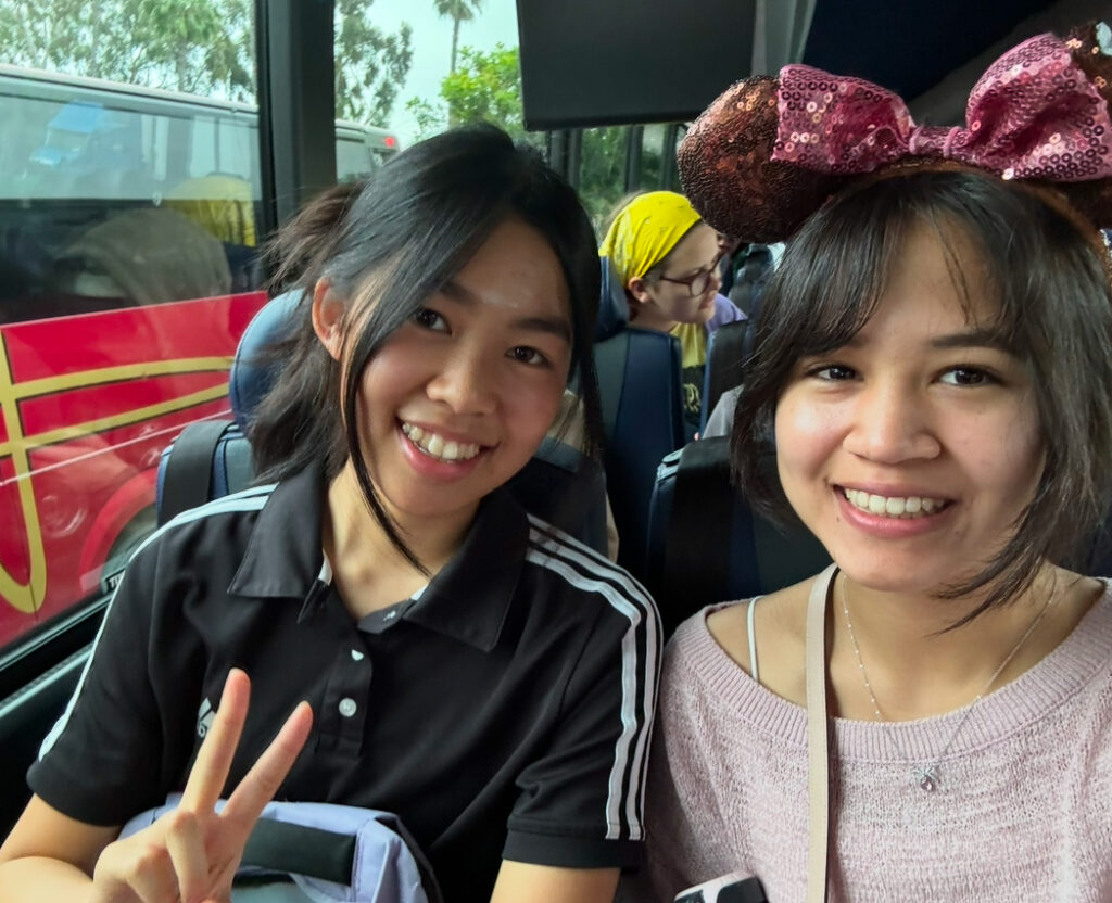 Courtesy Lexi Chua Katelyn and Lexi on the bus during the school music trip to Disneyland.