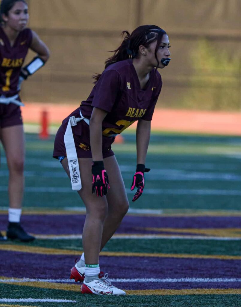 Ramos-Gonzalez has been playing flag football for three years now. “I played club for a year, and then two years here at M-A,” she said. “I’m going into my second year playing club for a different team in the Bay Area. It’s called High Intensity.”