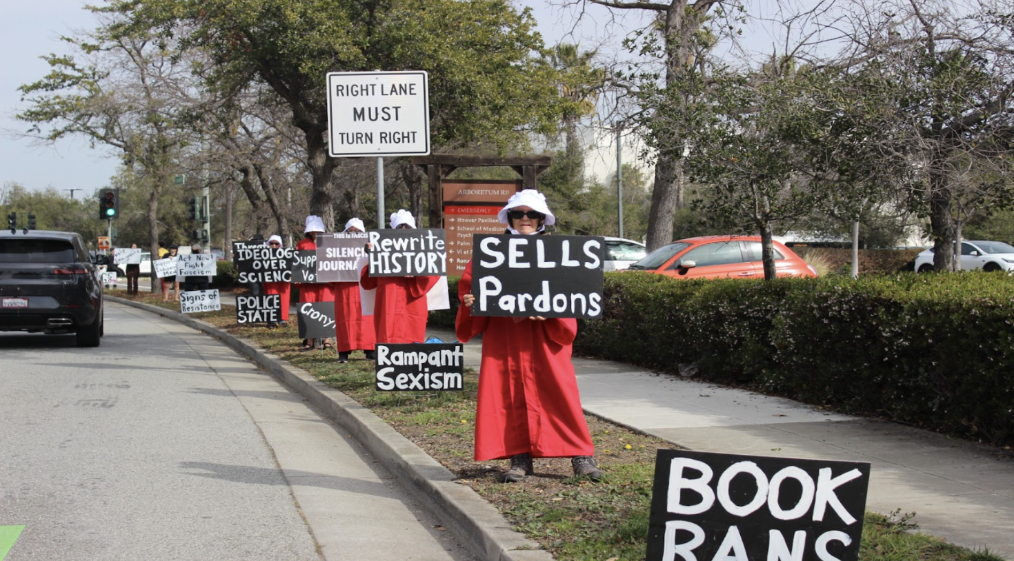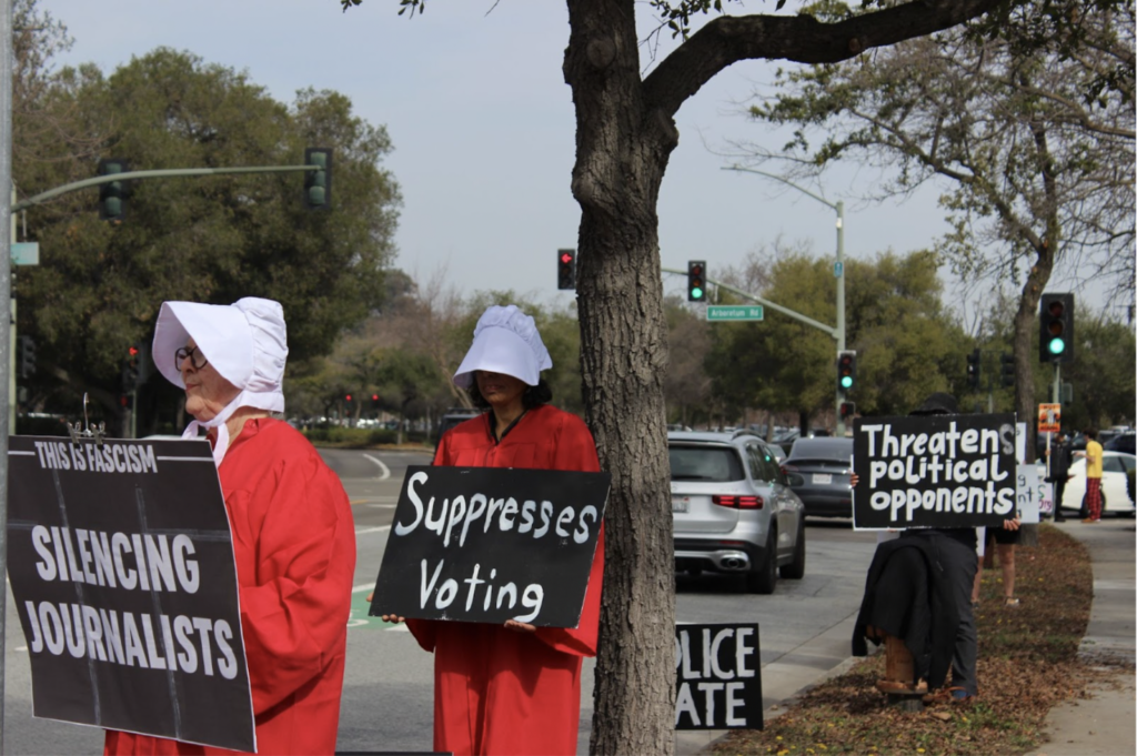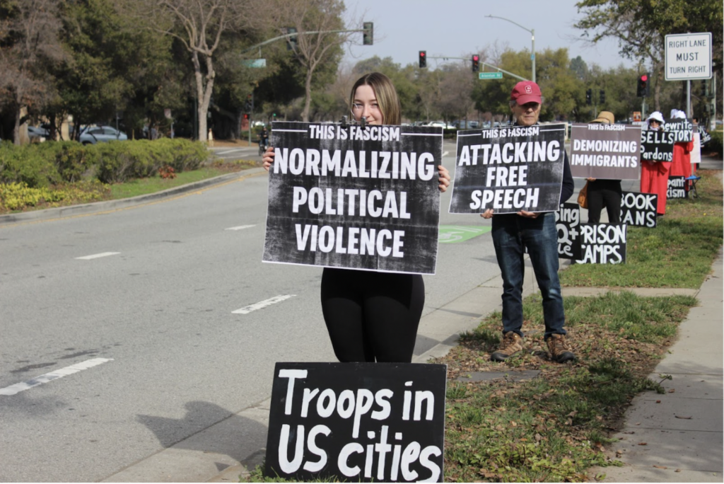 A group of protesters gathered on the corner of Sand Hill Road and Arboretum Road at 11:30 a.m. on Saturday. The protest, called Signs of Fascism, was one of many protests that took place that weekend and was organized to draw parallels between elements of fascist governments and the recent actions of the Trump administration.
