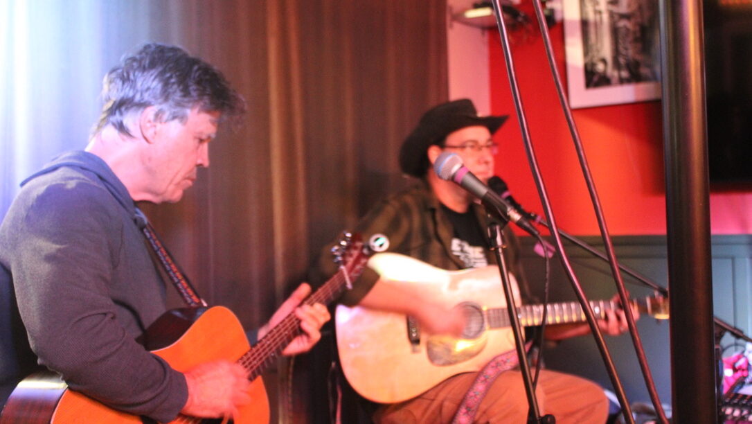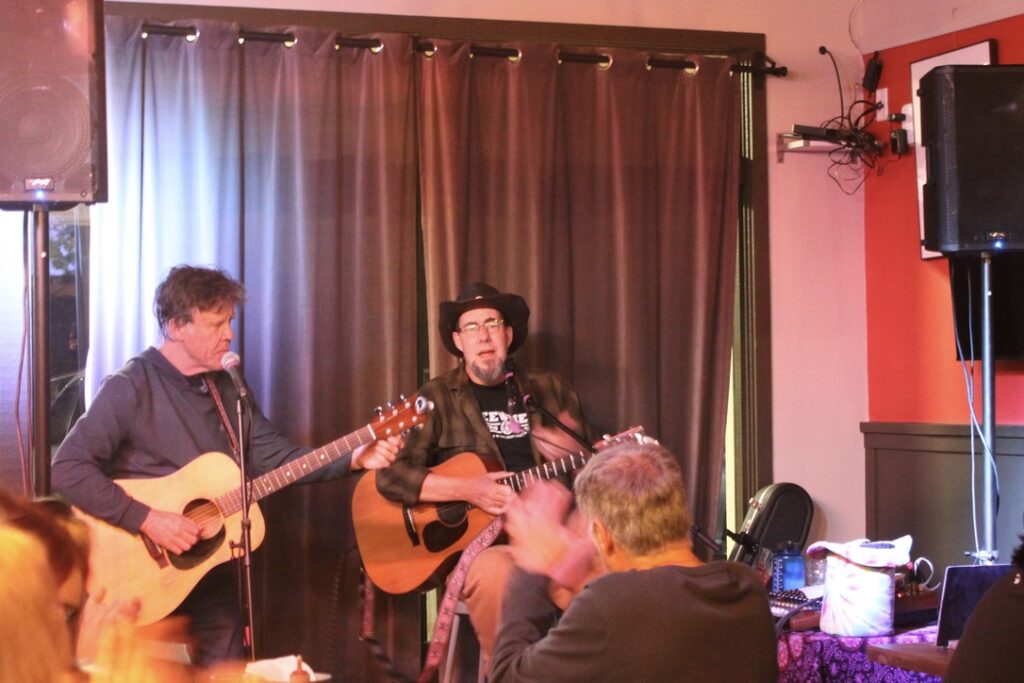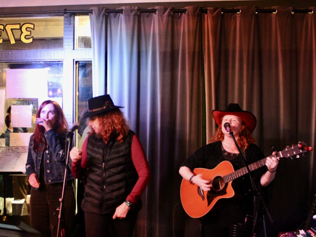 One of the last musicians of the night, The Sorta Sisters, played an original song called “Bump in the Road,” which will be released at the end of January. The Sorta Sisters, including founders Kara Hermann and Jenny B-G, came together through local open mic nights. “[We] met at a different open mic at Cafe Zoë, we started adding harmonies to each other’s songs, and we’ve grown from there,” Hermann said. “We come to open mics to practice and get public exposure.”