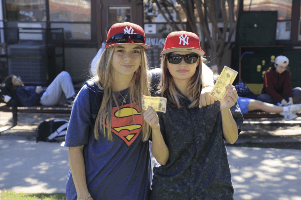 Sophomore Selina Manninen sported a red Yankees baseball cap with sunglasses and a button-up shirt. Freshman Presley Alabama Schiebold also wore a matching red Yankees cap and a Superman t-shirt.