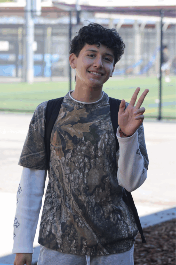 Freshman Henry Virula Romero wore a Realtree camouflage shirt over a waffle long-sleeved shirt and grey sweatpants. Romero compared this school’s spirit with the spirit of his previous school. “It’s better than my last school,” he said.