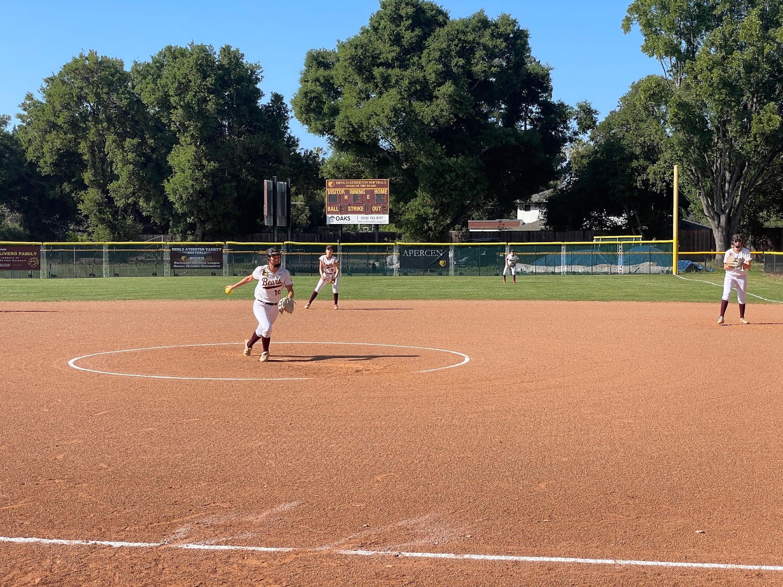 On Monday afternoon, the softball team beat the Half Moon Bay Cougars by mercy rule to win 11-1 in an important league match, improving to 5-1 in league play and 7-9-1 overall. A dominant performance from senior pitcher Dani Koo kept the Cougars at bay, and a strong offensive showing from M-A secured an 11-1 win.