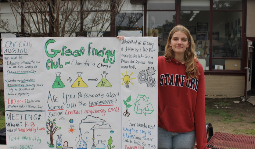 Sophomore Josie McGuire started the Green Energy Club through her passion for chemical engineering and helping the environment. “The aim of this club is to educate people on chemical engineering, and the end goal is to create products using chemical engineering in order to help the environment,” McGuire said. The club meets in F-13 on Wednesdays every week.