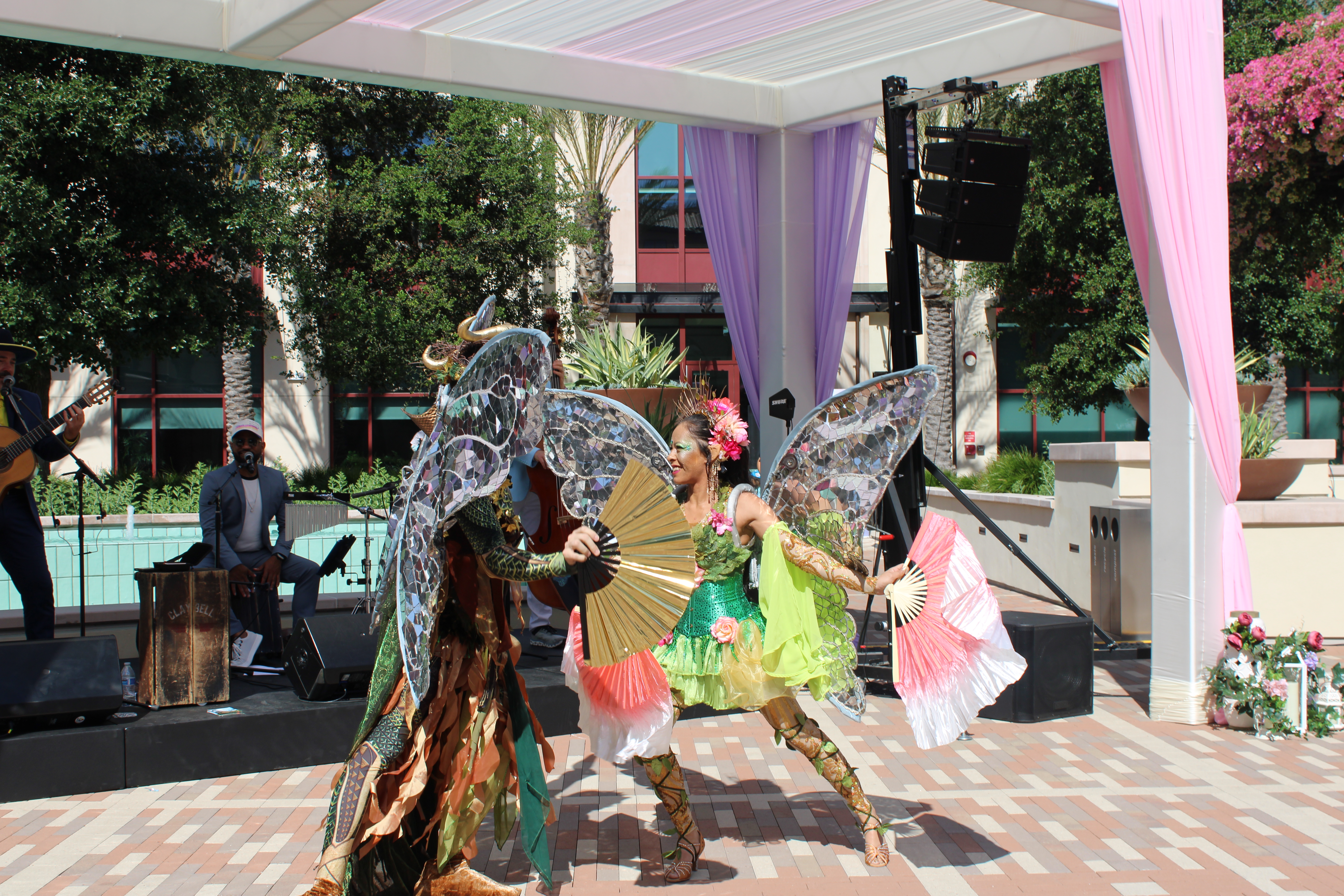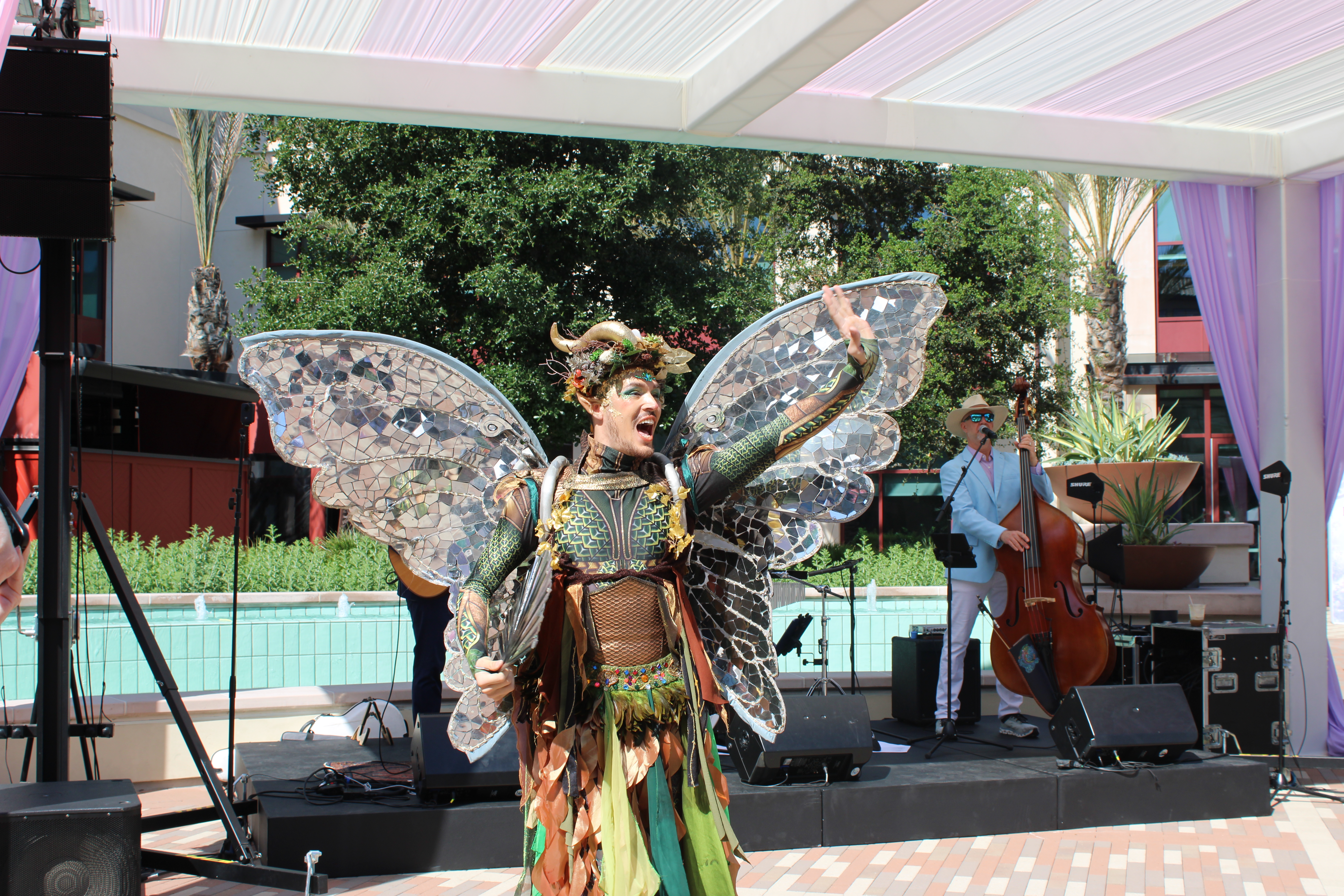Performers dressed as elves came out around 11:30, decked out in holographic wings, glittery makeup, and intricate fans. They danced to the live music, interacted and posed for photos with attendees throughout the event, which lasted until 3 p.m.