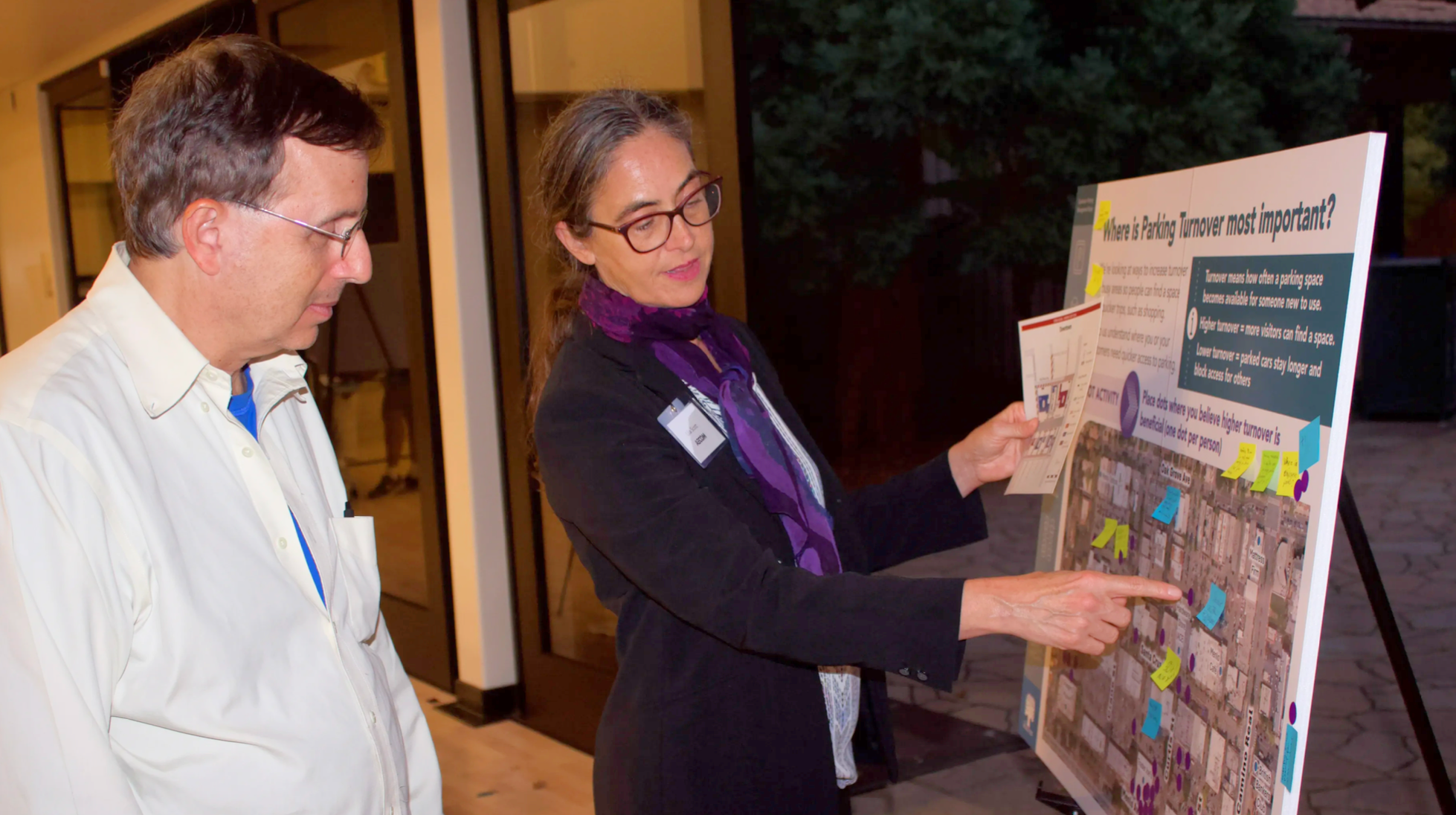 Turnover is defined as how often a spot opens for a new driver. High-turnover spaces are often seen where lots of short trips happen—including cafes, grocery stores, and grab-and-go retail. Many residents placed purple dots around Trader Joe’s, indicating that the Menlo Avenue-Cutis Street intersection in particular needs more quick in-and-out stalls instead of day-long parking.