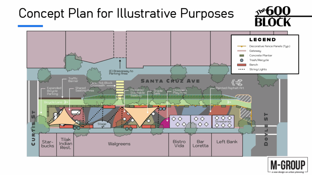 “[Santa Cruz Avenue] was closed down during Covid to facilitate parkways for local businesses and outdoor dining,” Assistant Urban Designer at M-Group Lorrin French said. “Now that [Menlo Park] has kind of proven this concept to some degree, we’re thinking ‘how can we potentially make this permanent?’”