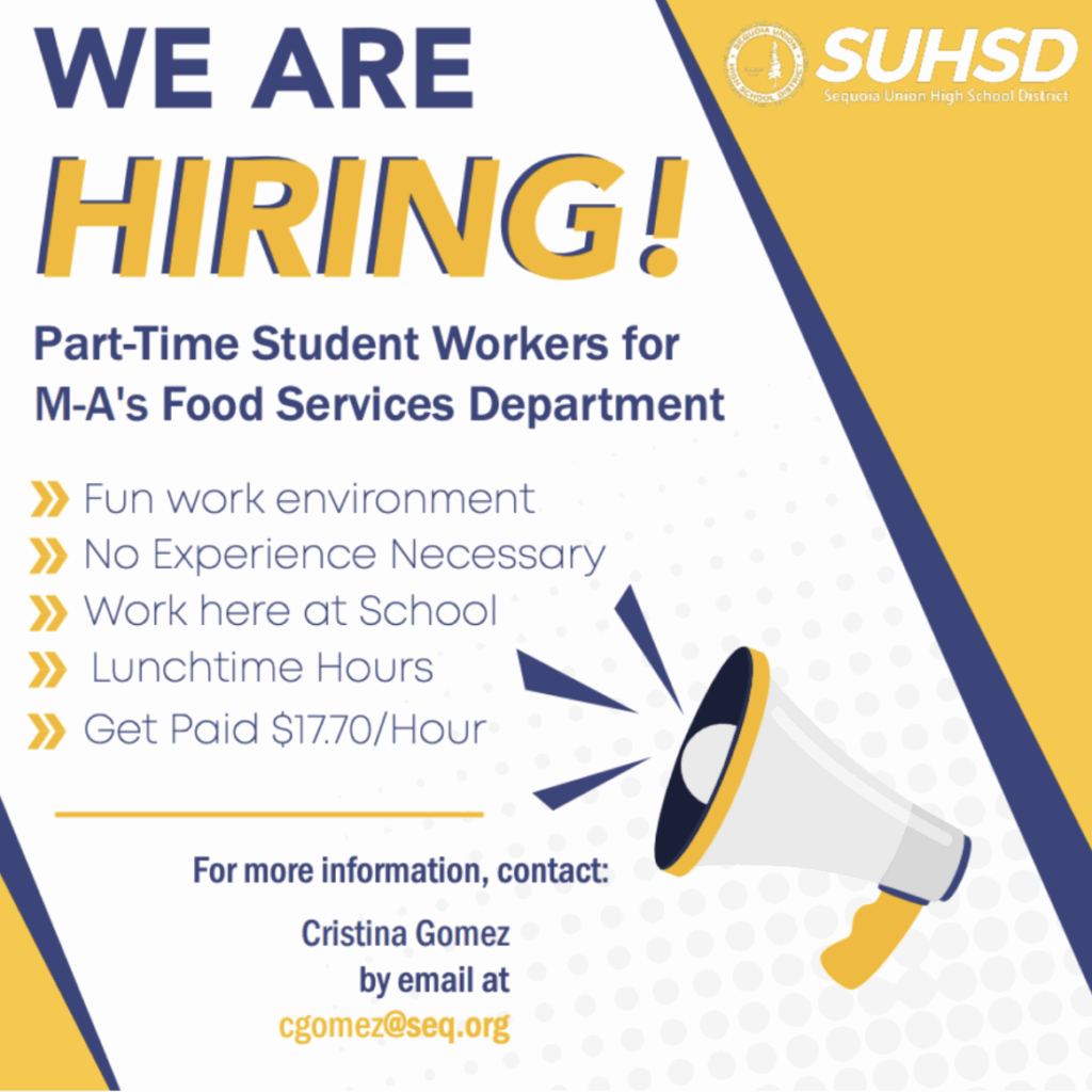 In order to work the lunch line, students need to get a work permit from room P-5 once hired and contact Cristina Gomez at [email protected].
