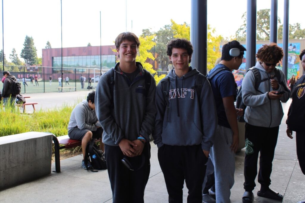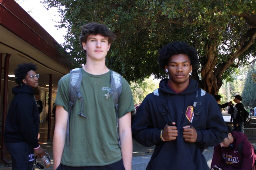 With temperatures dropping, many Bears have found creative ways to bring fall into their outfits. “[My outfit relates to fall] because there’s a little red [on my jacket], so red and fall,” freshman Jordan Benkis said. Benkis wore black sweatpants and a comfy hoodie to keep warm on a cold day.