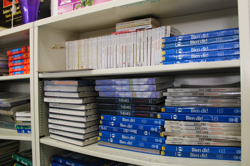 Spanish II teacher Michael Mueller doesn’t use textbooks at all. “We like to keep the class more lively and in the moment,” he said. “I would also like to see us stop spending money on textbooks and killing so many trees.”