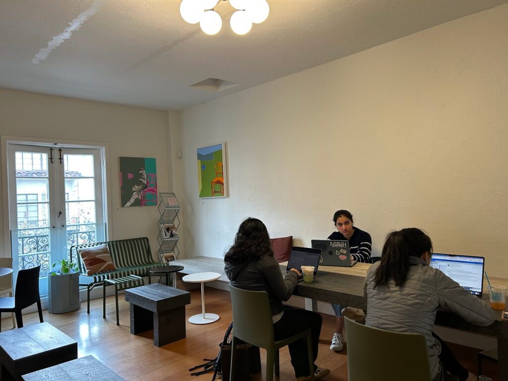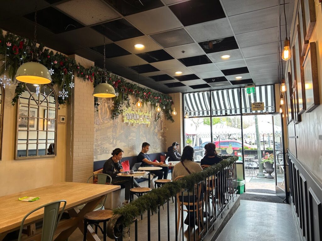On the corner of Redwood City’s Broadway and Jefferson sits Sana’a Cafe. Inside, the interior features gold and green accents and a bright ambiance. Despite its curated aesthetic, customers can still pop open their laptops without fear of ruining the vibe, making it the ultimate study destination. Sana’a’s offers a variety of seating, from casual bar chairs to comfy booths with couches, providing a comfortable place to accommodate your study session. The grand windows fill the space with natural light from all directions, while the beautiful artwork on the walls cultivates a dreamy setting, making it more pleasurable to work. The cafe is open from 7 a.m. to 10 p.m. Sunday to Thursday, and closes at 12 a.m. Friday and Saturday, making it the place to go for late-night studying. Sana’a offers a variety of quality Yemeni coffee, tea, and sweets, adding a traditional twist to your usual cafe finds.