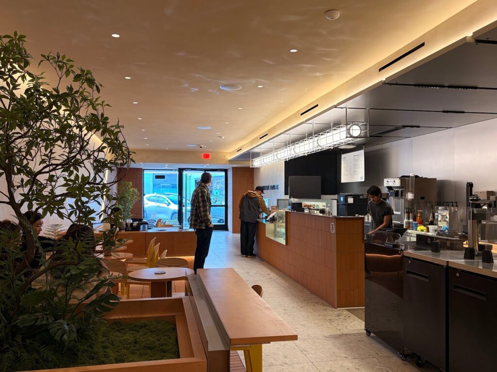 You can find Yummy Future Coffee on University Ave, where it opened last October. Yummy Future Coffee stands out from other cafés because instead of humans making the coffee, a robot does. When you first enter, it’s hard not to notice the robot, designed to deliver drinks at high speed and top precision. Although it may seem off-putting at first, their menu will quickly change your mind. They offer a wide selection of sandwiches, pastries, coffee, and matcha, making it easy to find something that satisfies your afternoon cravings. The space itself is windowless and dimly-lit, making it feel a bit closed off. However, it’s the perfect place if you want to focus, offering way too many outlets, plenty of seating, and whiteboards at customers’ disposal. It’s an optimal spot during finals focus week.