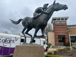 Tanforan Mall is full of memorials to its rich history, as even the entrance of the mall has a bronze statue commemorating Seabiscuit, the legendary racehorse. The Bay Area Rapid Transit (BART) station in Tanforan has a memorial of the Tanforan Assembly Center which contains the names of everyone who was forced out of their homes to go to Tanforan during the war. To learn more about the history of San Bruno, the San Bruno Public Library contains newspaper clippings and books that archive the long and detailed history of the city, additionally, you can learn more about the Tanforan Memorial here.
