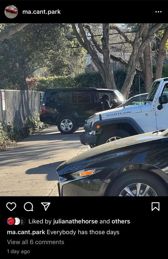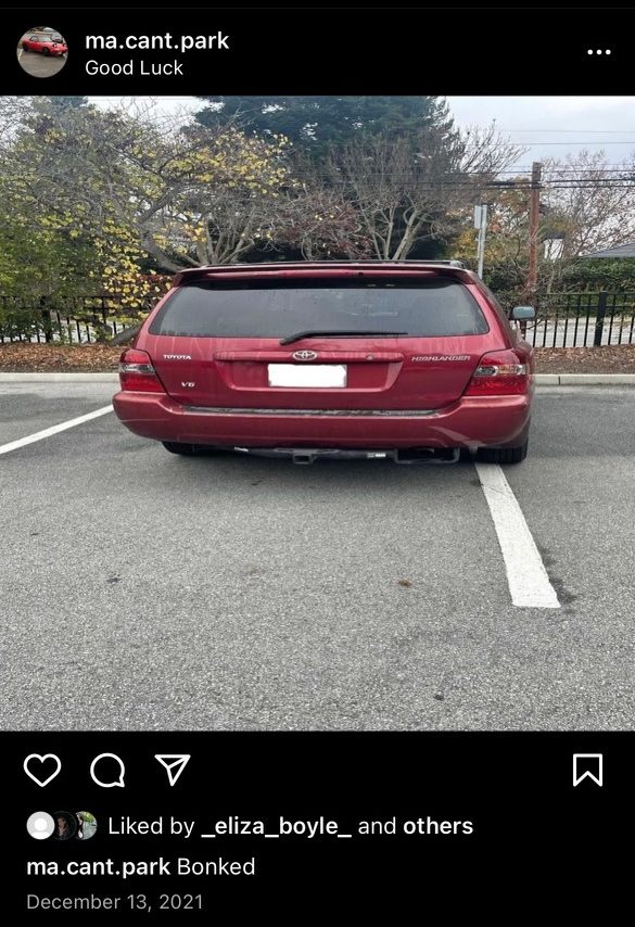 While the student who runs the account remains anonymous, they hoped that “it brightens up their [followers’] days” and that they “have a laugh.” Additionally, they explained how posting these pictures may help students gain consciousness of their parking skills and “begin to realize, ‘Oh, I’m taking up two spaces. When I park on Monday, I’ll do a better job.’”