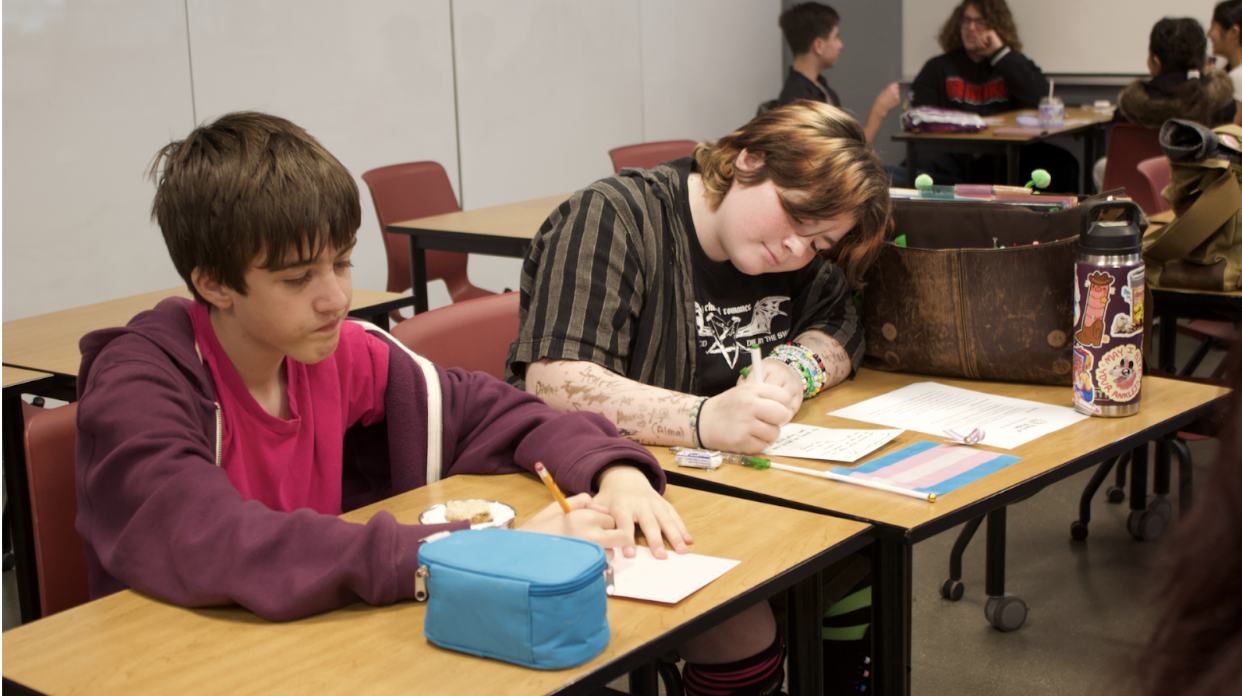 “We’re representing trans people, and we’re writing them cards to let them know that they are loved, they are welcome in this community, and that even if some people may not agree with what their identity is—we still love them, we appreciate them, we want them to feel safe and welcome,” sophomore Ben Eames said.