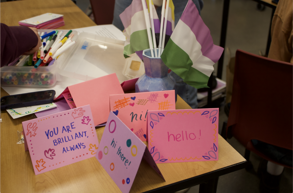 The club gathered in G-8 to make cards with supportive and positive affirmations such as “You are valid” and “You are loved.” The cards were made for Point of Pride, a non-profit dedicated to helping transgender people access healthcare and gender affirming services.