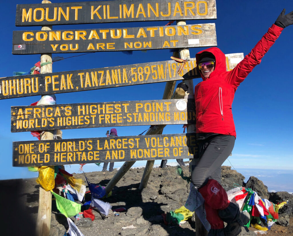 Alexis’ favorite expedition for her job was reaching the summit of Kilimanjaro. “Standing on the summit is magical. You get to watch the sun rise at 19,000 feet after ascending for the entire night in the dark with just a headlamp and your guides,” she said. “Taking photos of my teammates’ success was the highlight.”