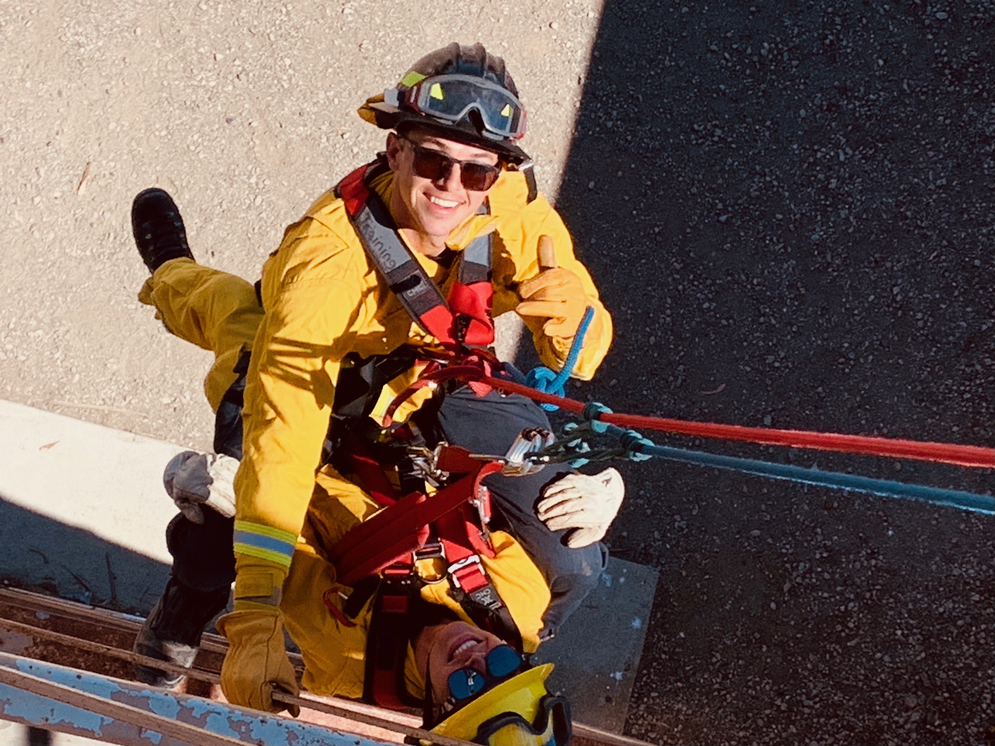 One day, he was venting to his grandfather about what he wanted to pursue. His grandfather was the Fire Chief of Menlo Park, so he has always been very close to this line of work. He explained, “My grandpa was my hero when I was a kid. When I was venting to him, he told me about how everybody’s story is different and college isn’t going to be the same for each individual and that I should follow my heart. So I reevaluated my life, packed up my stuff to come home, and I took my first fire class in August of 2013.”