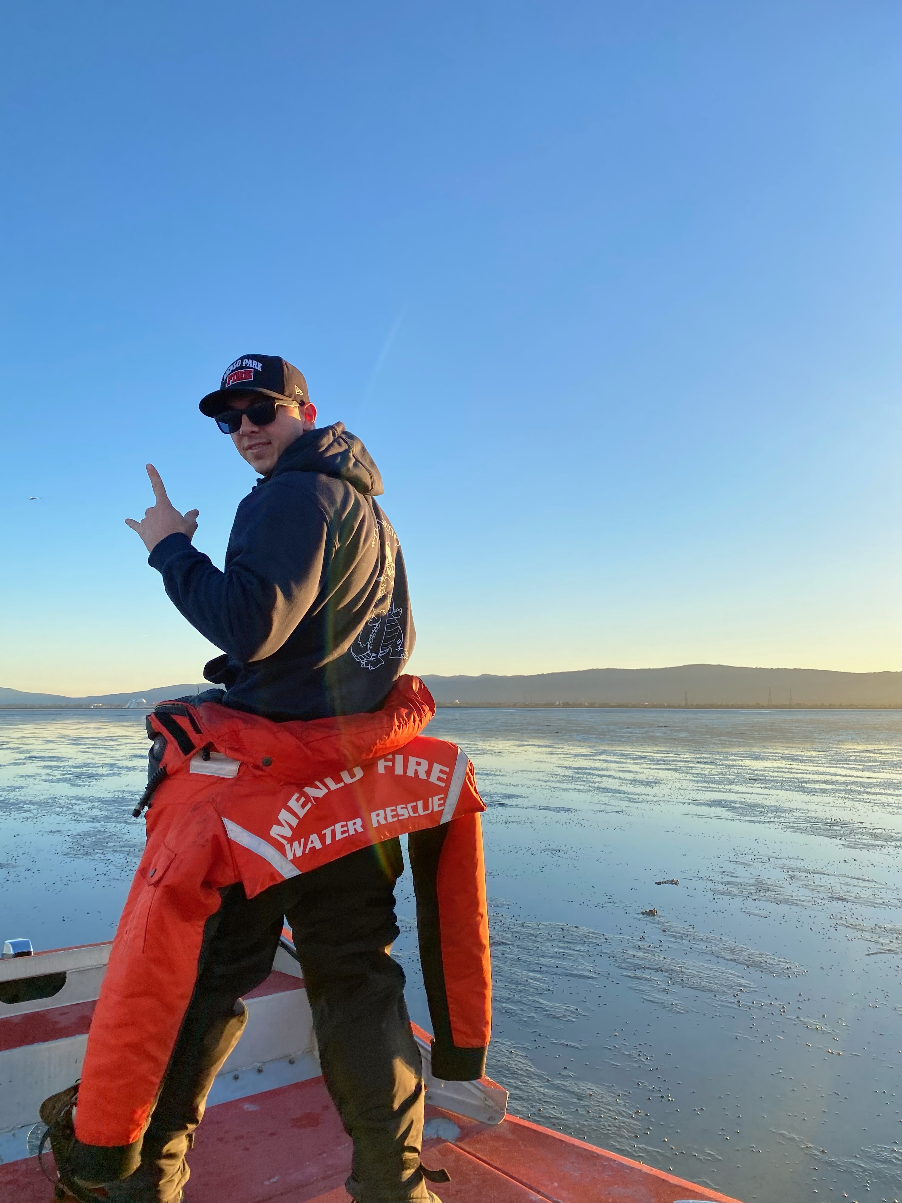 After that, he was hired as a volunteer with Coastside Fire in Half Moon Bay and worked there for three years. In 2018, he applied to work in the Menlo Park Fire Department, but didn’t end up starting until 2021 because of COVID delays. For his first year, he was on a probationary period, which is one year that is broken into four phases. He explained, “They test you on a multitude of things, and they’re basically teaching you how to live the life of a Menlo Park Firefighter. There are three men–the captain, the engineer paramedic, and the rider, who is the probationary firefighter. They are the ones going into the fire with the captain, and responding to everything. They can let you go for any reason.”