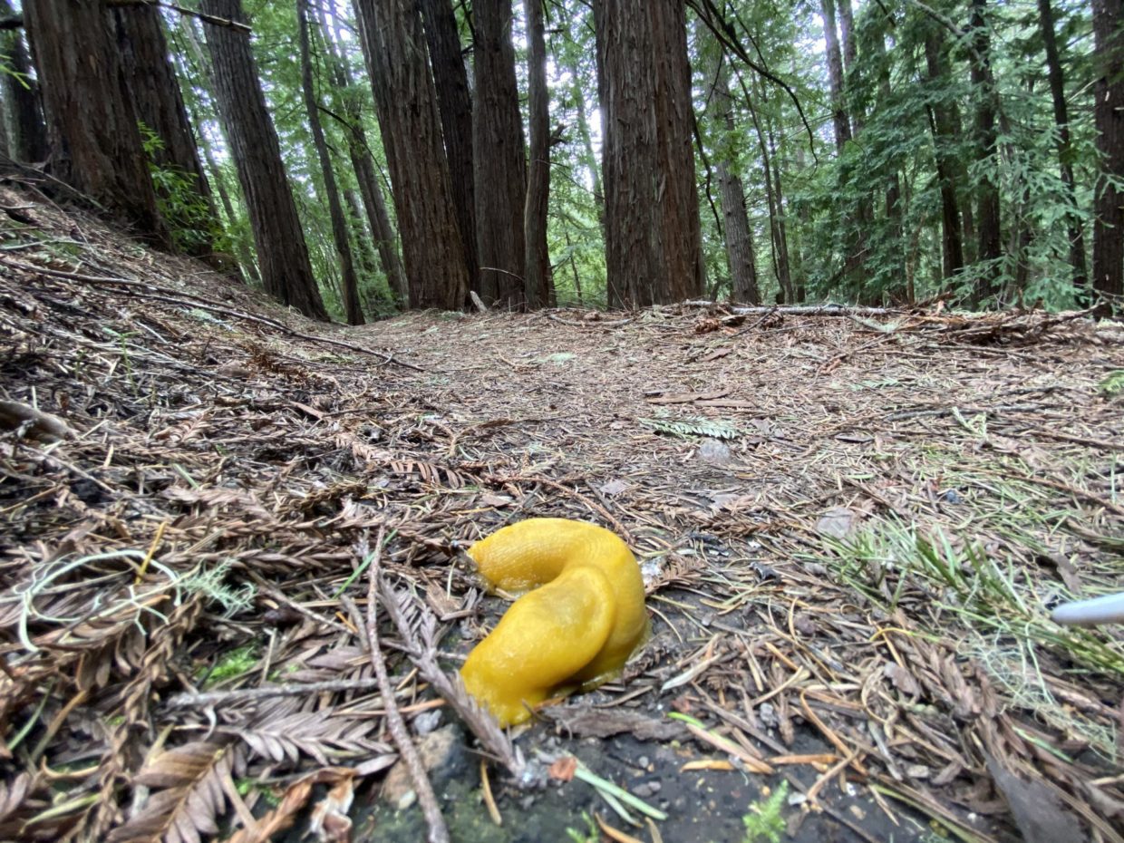Sporting nurse logs–nutrient-rich felled trees–with huckleberry bushes atop, and the occasional redwood hollowed out by an ancient forest fire, serving as a home for bats, the park is on the road to recovery. The slugs are plentiful, as are the purple calypso orchids, which bloom at this time of year.